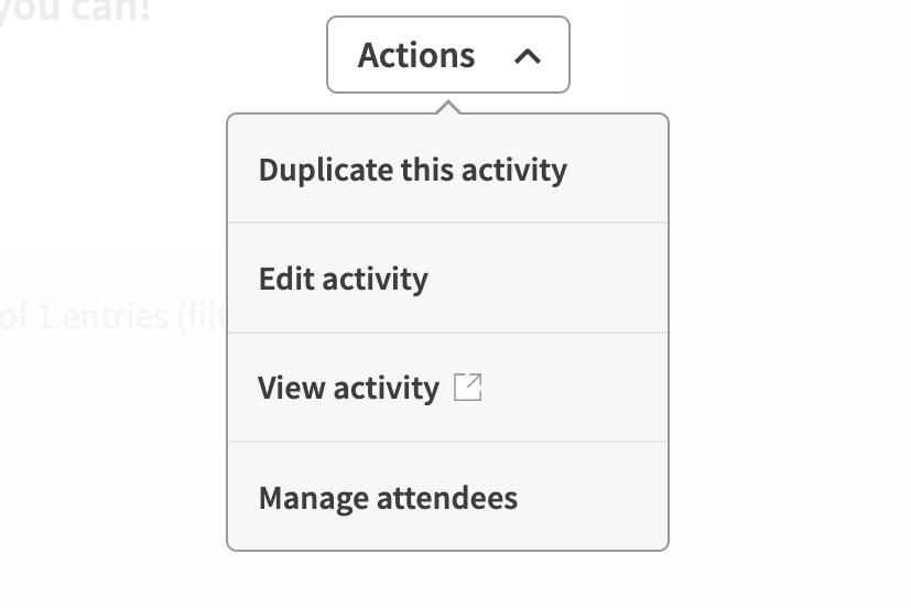 - Open the 'actions' menu on the right hand side and use the 'manage attendees' link. It will have a number telling you how many new bookings you have.