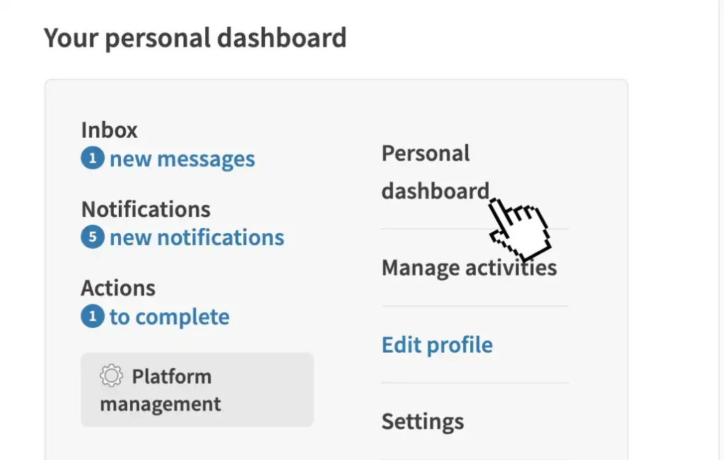 - Use the main menu to quickly access your dashboard. You may already be directed to your dashboard after signing in.