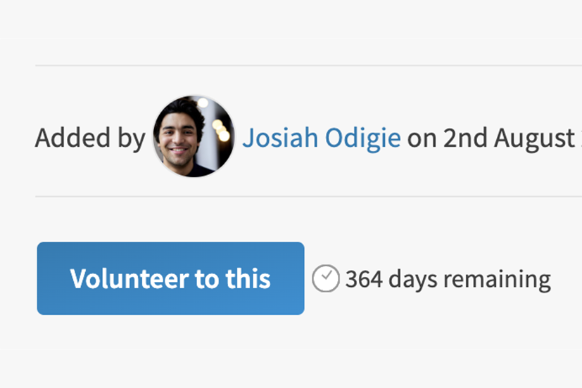 • Click or tap on the the 'Volunteer to this' button.