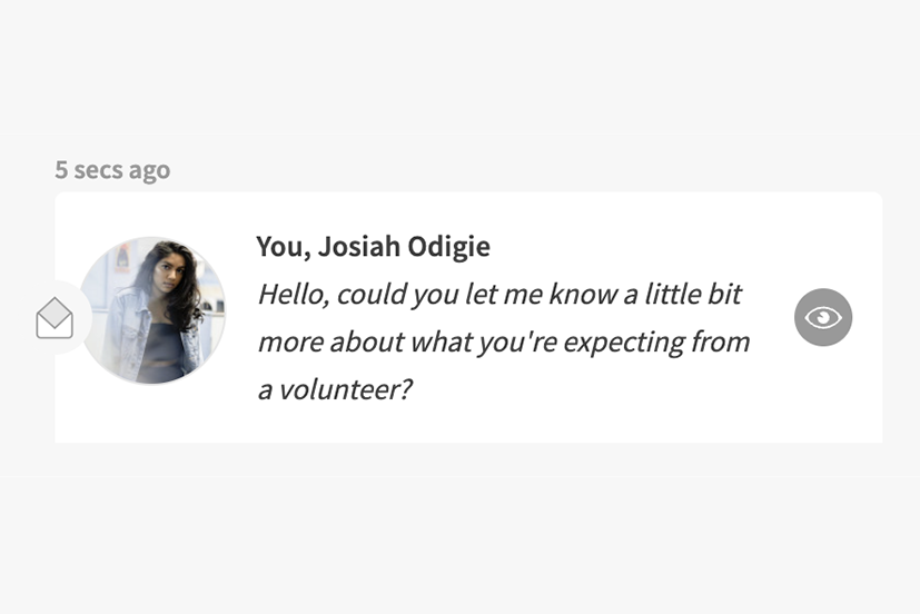 Both of these scenarios will send a 'pledge' notification to the organisation, letting them know you're interested in the opportunity. They may reach out via the chat function on the platform, or contact you directly if you include your phone number or email address.
