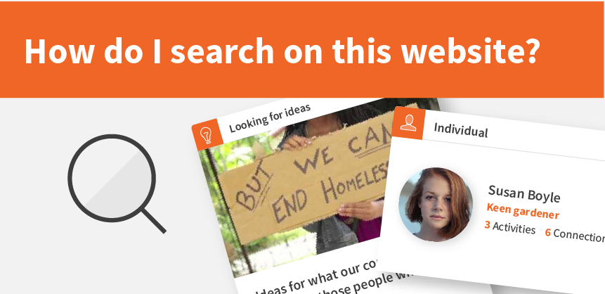 - Click on the magnifying glass on the very top menu to search for activities via a keyword (keyword search searches activity title and description).