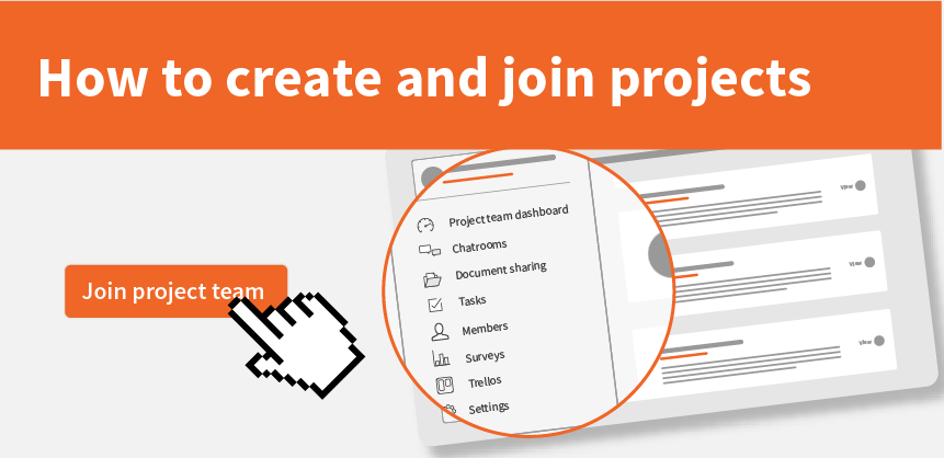 - Click on the project team you want to start a chatroom in. You can start a chatroom either by using the left-hand menu and selecting ‘chatrooms’, or by using the chatroom button on the main dashboard page.